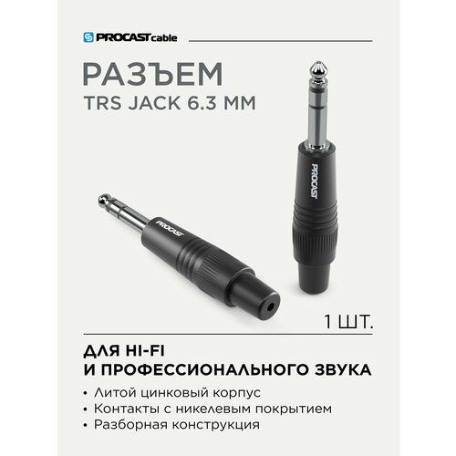 НАЙТИ ВЫГОДНЕЕ - Разъем TRS Jack 6,3mm (male) PROCAST cable TRS-6.3/6/M/S черный