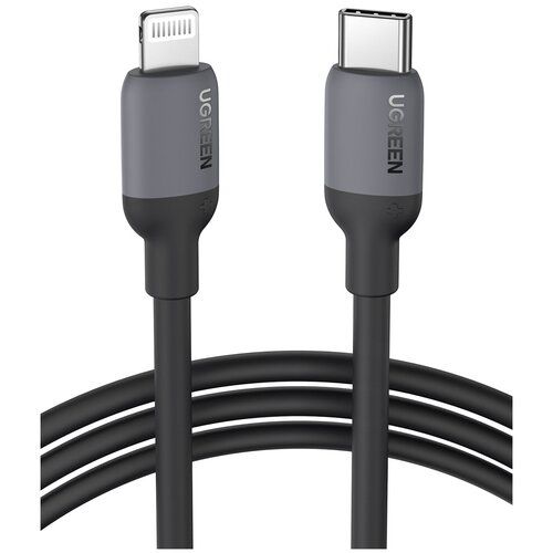 UGREEN. Кабель USB C - Lightning, силиконовая оболочка, цвет черный, 1 м (20304)