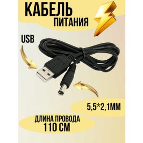 Шнур USB-А папа - DC 5.5 x 2.1 мм папа длиной 1 метр предназначен для подачи питания (5 V DC) используется для подключения выносных блоков питания или напрямую к различным устройствам: электронные медицинские приборы, настольные вентиляторы и лампы, зарядные устройства, портативные акустические системы, планшеты на базе андроид, кнопочные телефоны, ноутбуки, массажное оборудование, камеры видеонаблюдения, наушники, видеорегистраторы и навигаторы, электроприборы, электроинструменты, можно подключить внешний аккумулятор к маршрутизатору, зарядки различных электронных устройств, планшетных ПК, MP-3 плееров, внешних накопителей и т. п. (в частности подходит для большинства моделей китайских планшетных ПК). и т. д.Приобретение такого шнура пользователем современных электронных устройств решит вопрос с их подключением к сети в случаях: утере шнура; подключения на работе или другой комнате вашего дома (используя как второй шнур); путешествия или командировки, исключая необходимость хранения дополнительных громоздких адаптеров питания. Шнур адаптер питания, зарядное устройство штекер бочка DC работает от постоянного тока 5В от usb-порта. Это готовое решение для поддержки ваших гаджетов в рабочем состоянии. При производстве кабеля применяется уникальная высокоточная система пайки, разъемы изготовлены из высококачественного пластика, а контакты из качественного сплава, что способствует стабильной и быстрой зарядке устройства. Шнур располагает оптимальной для пользования длиной - 1 метр. Приобретайте шнур GSMIN и избавляйтесь от хранения громоздких адаптеров питания