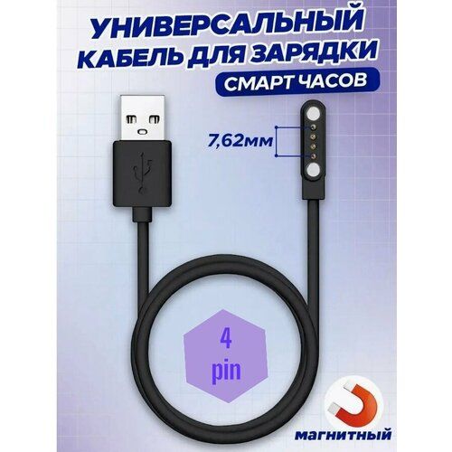 Найти - Магнитный USB-кабель HIGH TECH, для смарт-часов Elary , Tiroki и других, 4 pin, 7.62 мм. чёрный.