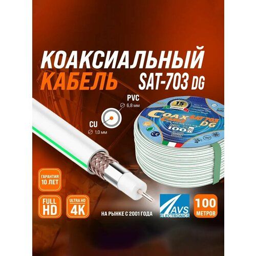 НАЙТИ ВЫГОДНЕЕ - Медный телевизионный коаксиальный кабель 100 м SAT-703 DG Cu AVS Electronics провод для антенны спутниковой тарелки, цифрового, эфирного тв 100 метров 001-222006