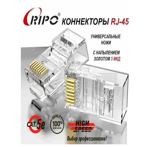 Найти - Коннектор RJ45 для витой пары разъём RJ-45 штекер TP-8P8C UTP CAT6 покрытие золото 3 мкд универсальные ножи Ripo 100 шт в упаковке 003-400023