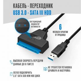 Не требуется установка драйвера. Адаптер SATA на USB 3.0 может легко подключить 2.5" SATA SSD или HDD диск к Вашему компьютеру, ноутбуку для расширения хранилища, обновления системы, резервного копирования файлов, извлечения и восстановления и передачи данных. Это необходимо для загрузки старых запасных жестких дисков и восстановления важных файлов с сломанного компьютера. Высокая скорость Благодаря стандартным разъемам USB 3.0 и SATA III адаптер поддерживает скорость передачи данных - до 5 Гбит/сек Поддерживает ноутбуки с ОС Windows / Mac OS / Linux / Chrome OS, игровые приставки, такие как Sony PS4 / PS3 / Xbox One, Smart TV.