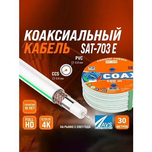 НАЙТИ ВЫГОДНЕЕ - Коаксиальный телевизионный кабель 30 м SAT-703E CCS AVS Electronics антенный провод для цифрового тв 30 метров 001-222001/30
