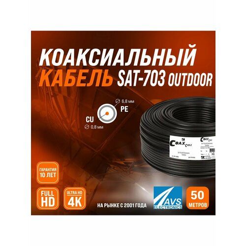 НАЙТИ ВЫГОДНЕЕ - Уличный телевизионный кабель 50 м медный внешний коаксиальный наружный антенный провод для спутниковой тарелки, цифрового тв 50 метров 001-222004/50