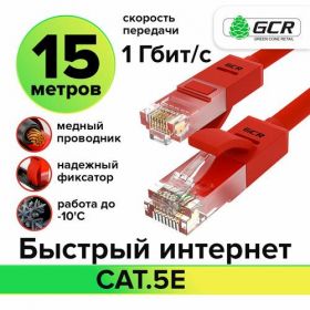 Найти - LAN кабель UTP cat.5e 1 Гбит/с RJ45 LAN CCA для интернета контакты 24K GOLD (GCR-LNC500) Красный 15.0м