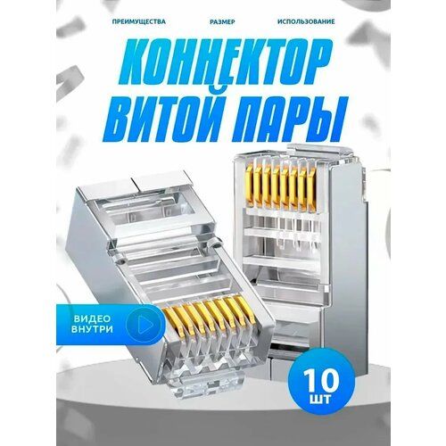 Найти - Коннектор RJ45 для витой пары разъём RJ-45 штекер TP-8P8C UTP CAT5e экранированный Ripo 10 шт в упаковке 003-400007/10