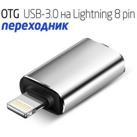 Найти - Переходник / адаптер OTG USB 3.0 на Lightning ISA для Apple iPhone, iPad, iPod с разъёма Lightning 8pin на гнездо USB 3.0 серый металлик