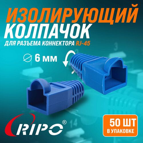 НАЙТИ ВЫГОДНЕЕ - Изолирующий колпачок для витой пары Ripo для разъемов коннектора патч корда RJ-45 синий диаметр 6,1 мм 003-400026/50