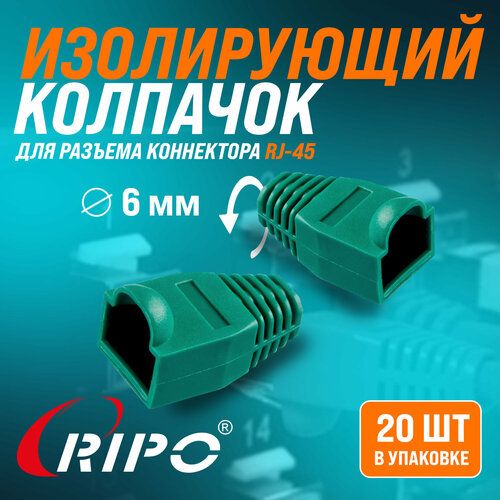 НАЙТИ ВЫГОДНЕЕ - Изолирующий колпачок для витой пары Ripo для разъемов коннектора патч корда RJ-45 зеленый диаметр 6,1 мм 003-400027/20