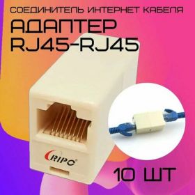 НАЙТИ ВЫГОДНЕЕ - Проходной адаптер для витой пары Ripo Соединитель интернет кабеля RJ45-RJ45 (8P8C) Cat5e (Класс D) 100МГц белый провода 10 шт в упаковке 003-500049/10