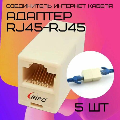 НАЙТИ ВЫГОДНЕЕ - Проходной адаптер для витой пары Ripo Соединитель интернет кабеля RJ45-RJ45 (8P8C) Cat5e (Класс D) 100МГц белый провода 5 шт в упаковке 003-500049/5