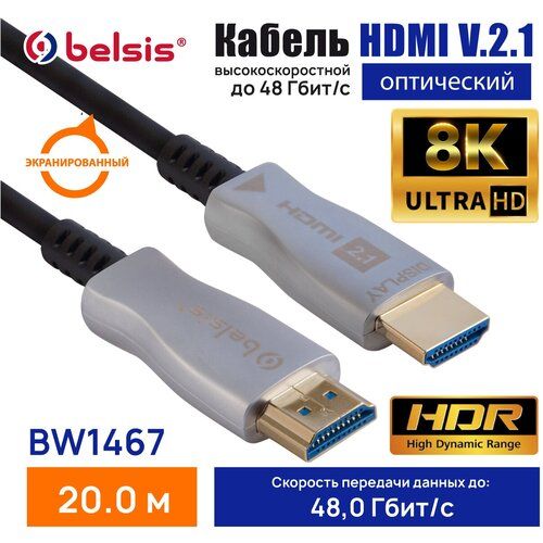 НАЙТИ ВЫГОДНЕЕ - HDMI Кабель 2.1 8K, 4K, Оптический Belsis, Длина 20 метров /BW1467