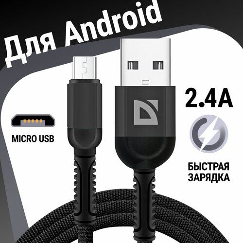 НАЙТИ ВЫГОДНЕЕ - USB кабель Defender F167 Micro черный, 1м, 2.4А, ткань, пакет