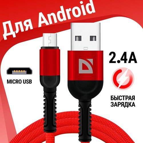 Найти - USB кабель Defender F167 Micro красный, 1м, 2.4А, ткань, пакет