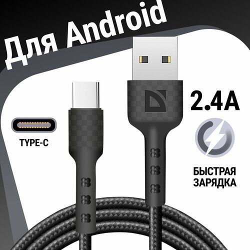 USB кабель Defender F181 TypeC черный, 1м, 2.4А, нейлон, пакет: