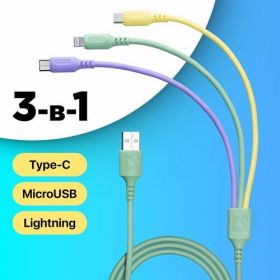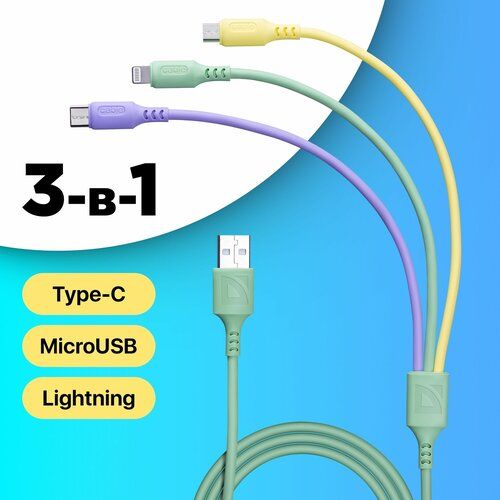 USB кабель Defender F207 3in1 зеленый, 1.2м, силикон, пакет:
