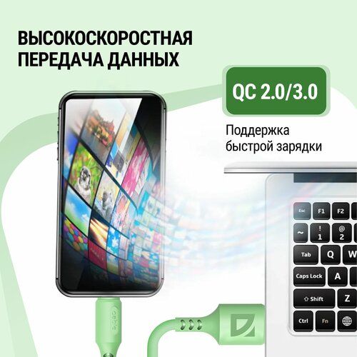 НАЙТИ ВЫГОДНЕЕ - USB кабель Defender F207 Lightning зеленый, 1м, 2.4А, силикон, пакет