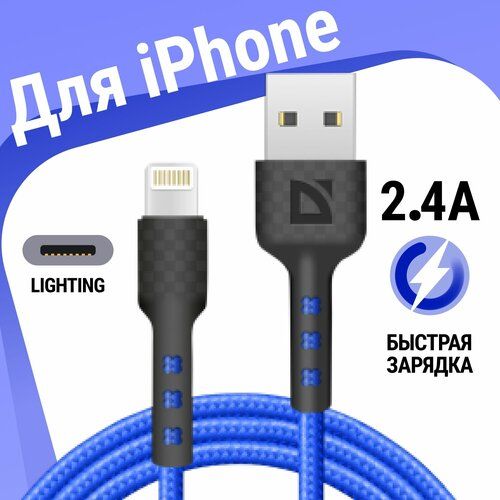 Найти - USB кабель Defender F181 Lightning синий, 1м, 2.4А, нейлон, пакет
