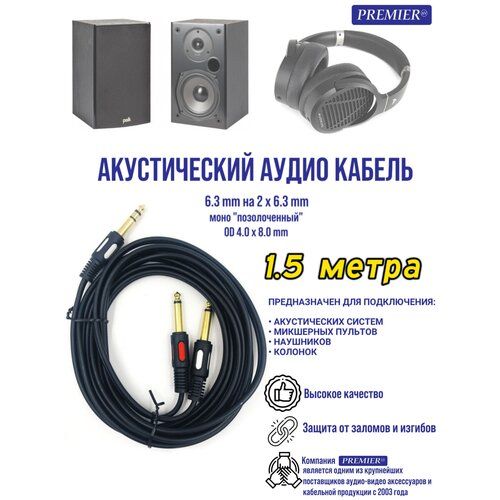 Шнур 6.35мм штекер стерео - 2 x 6.35мм штекер моно "позолоченный" OD4.0x8.0мм 1.5 метра - это высококачественный кабель, предназначенный для подключения различных аудиоустройств.