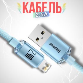 НАЙТИ ВЫГОДНЕЕ - Кабель для быстрой зарядки Baseus Crystal Shine Series USB на iPhone 2.4A , 2 м Голубой (CAJY001203)