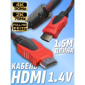 Найти - HDMI кабель 1,5 метра в оплётке / 4K , 2K, Full HD, 1080p, 165Hz, 8Gbit/s версия 1.4