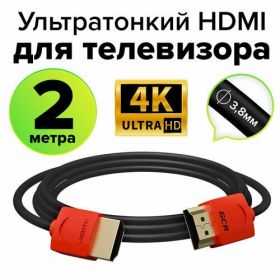 НАЙТИ ВЫГОДНЕЕ - Кабель для телевизора 2м GCR SLIM HDMI 2.0 Ultra HD 4K 60Hz 3D 18.0 Гбит/с 24K GOLD