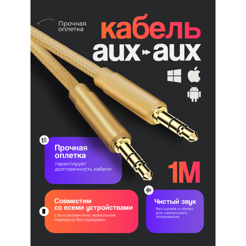 НАЙТИ ВЫГОДНЕЕ - Акустический кабель AUX mini jack 3.5 mm, WALKER CA-174 1 метр, аукс в машину, шнур для телефона и колонок в автомобиль, провод для усилителя, золотой