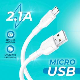 Найти - Кабель для зарядки телефона USB - micro USB, 2.1А, AMFOX, C11, белый / провод для заряда microusb, шнур микро юсб для питания смартфонов, наушников