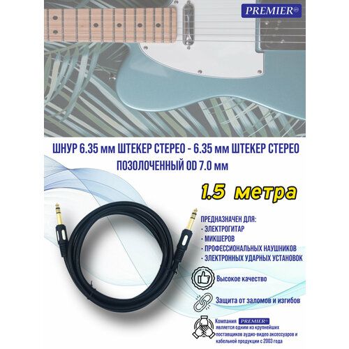 НАЙТИ ВЫГОДНЕЕ - Шнур 6.35мм штекер стерео - 6.35мм штекер стерео позолоченный OD7.0мм 1.5 метра