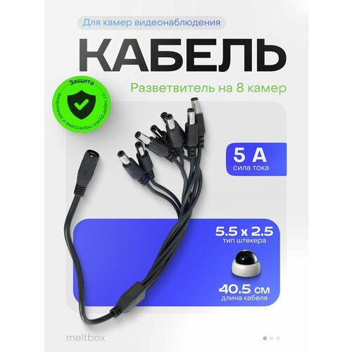 Разветвитель питания DC 1 гнездо 5.5x2.5 мм - 8 штекер 5.5x2.5 (2.1) мм предназначен для подключения к одному разъему питания двух устройств систем видеонаблюдения, бытовых приборов или прочего оборудования. Разветвитель (делитель) питания подключает к источнику питания постоянного тока устройства с внешним диаметром 5.5 мм, внутренним диаметром 2.5 мм, также подходит к 2,1 мм. Используется для быстрого монтажа камер видеонаблюдения, в охранных системах.