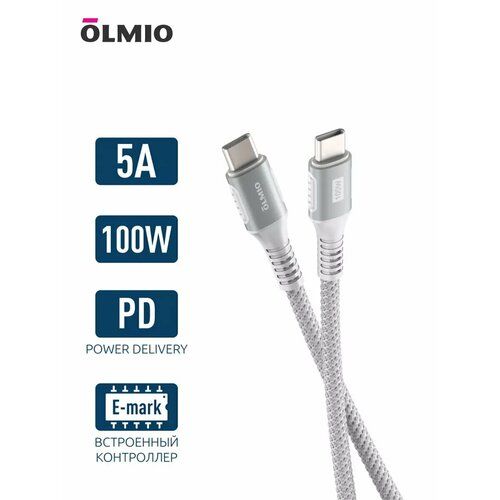 Olmio PD100 — прочный кабель type c формата type c type c для быстрой зарядки и синхронизации устройств с USB-C. Чип E-Mark и поддержка Power Delivery 100W обеспечивают стабильную работу ноутбуков, планшетов и смартфонов.