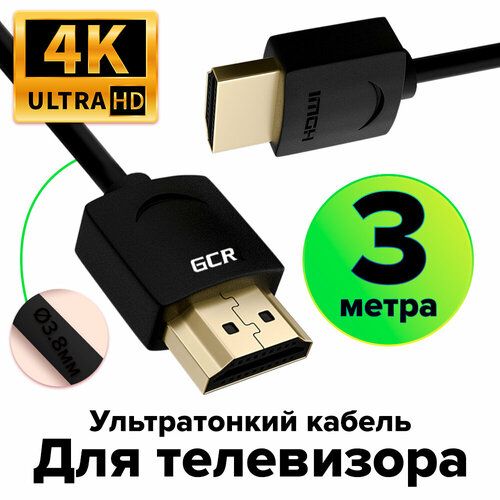 НАЙТИ ВЫГОДНЕЕ - Кабель 3м GCR SLIM HDMI 2.0 Ultra HD 4K 60Hz 3D 18.0 Гбит/с для PS4 Xbox One Smart TV телевизора 24K GOLD черный