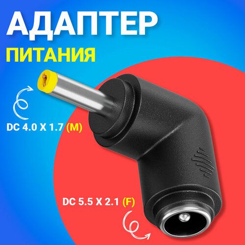 НАЙТИ ВЫГОДНЕЕ - Адаптер переходник питания GSMIN GG-23 гнездо DC 5.5 x 2.1 (F) - штекер DC 4.0 x 1.7 (M) угловой (Черный)