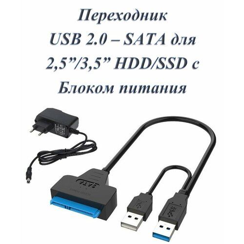 НАЙТИ ВЫГОДНЕЕ - Кабель переходник адаптер USB 2.0 - SATA для HDD 2,5 / 3,5 с гнездом для доп. питания (с блоком питания 12в 2А)