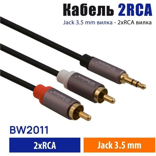 Найти - AUX кабель 3,5 мм на 2RCA Belsis Pro, Hi Fi Аудио Стерео, длина 1,2 метра, для Смартфона, Домашнего кинотеатра, AV-ресивера, Микшера и др. BW2011