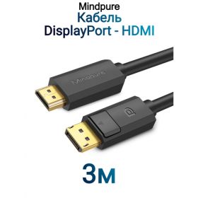НАЙТИ ВЫГОДНЕЕ - Кабель Mindpure DisplayPort (M) - HDMI (M) 4k AD029 3м Черный