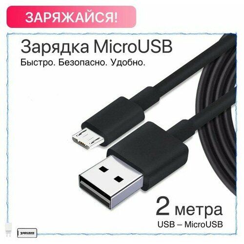 Найти - Зарядное устройство для телефона / Зарядка / Кабель / Длинный провод для зарядки Андроид 2 метра / Черный