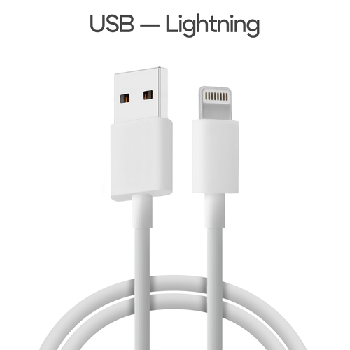 Кабель оснащен разъемами USB 2.0 (am) и Lightning (m), что позволяет подключать его к порту USB на компьютере для синхронизации и подзарядки, либо к адаптеру и использовать как зарядное устройство.