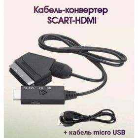 Кабель-переходник Scart-HDMI предназначен для преобразования аналогового Scart сигнала в цифровой HDMI, поддерживается разрешение до 720P/1080P (60 Гц). Plug and Play: легкий и портативный, не нужно устанавливать драйверы, простой в установке и эксплуатации. Scart вход поддерживает: PAL, NTSC3.58, NTSC4.43, SECAM, PAL/M, PAL/N и другие стандартные ТВ форматы ввода. HDMI выход поддерживает: HDMI 1.3 (720p/1080p 60 Гц) Устройство питается через порт MicroUSB 5V (кабель MicroUSB входит в комплект поставки).