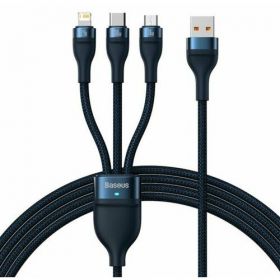 НАЙТИ ВЫГОДНЕЕ - Кабель для быстрой зарядки и передачи данных BASEUS One-for-three, USB to Lightning 2.4A/MicroUSB 18W/Type-C 100W, 1,2м, Синий, CASS030003
