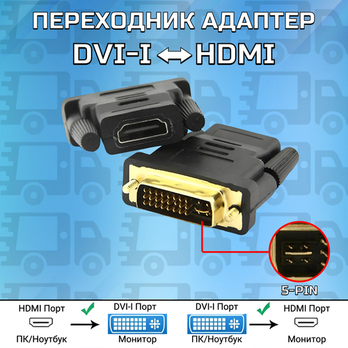 DVI (M) (dvi-i 24+5) - HDMI (F). Используя данный переходник вы с легкостью сможете подключить к разъему на персональном ПК или ноутбуку свой