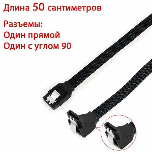 НАЙТИ ВЫГОДНЕЕ - Кабель SATA III 6Gb/s черный в оплетке 50см с углом 90 градусов