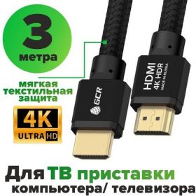 Найти - HDMI 2.0 шнур 3м GCR Ultra HD 4K 3D 18 Гбит/с 24K GOLD черный для One Smart TV
