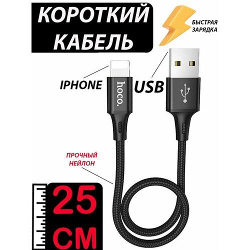 Найти - Кабель HOCO USB на Lightning 25 см, 2,4 A, быстрая зарядка, зарядный шнур, провод для телефона