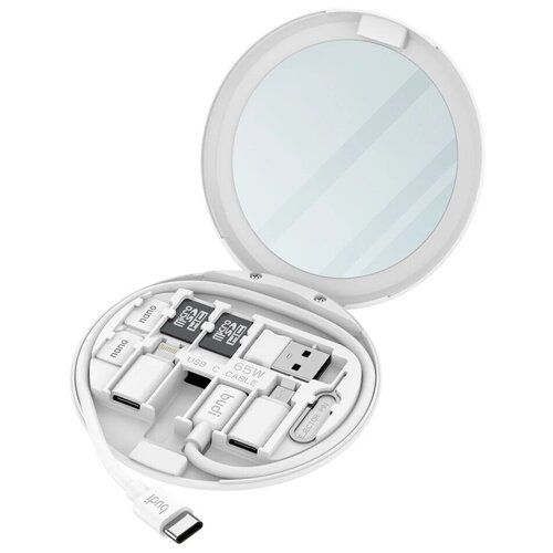 Найти - Набор 11 в 1 кабель с адаптерами + зеркало и подставка для путешествий, белый