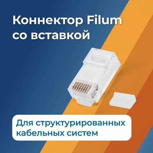 НАЙТИ ВЫГОДНЕЕ - Коннектор RJ-45, разъем для витой пары Filum FL-NA-PLUG6-2, 6 кат, со вставкой, 30 мкм, для одножильного и многожильного кабеля, уп/100 шт