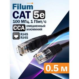 Кабель патч-корд U/UTP 5e кат. 0.5м Filum FL-U5-0.5M-BK 26AWG(7x0.16 мм), омедненный алюминий (CCA), PVC, чёрный