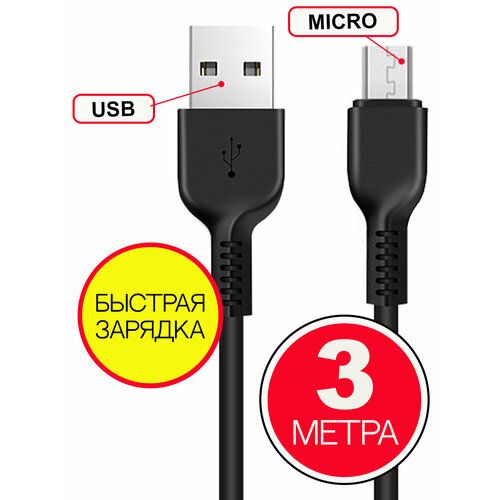 НАЙТИ ВЫГОДНЕЕ - Кабель HOCO USB на Micro USB 3 м, Черный, быстрая зарядка, зарядный шнур, провод для телефона