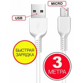НАЙТИ ВЫГОДНЕЕ - Кабель HOCO USB на Micro USB 3 м, Белый, быстрая зарядка, зарядный шнур, провод для телефона